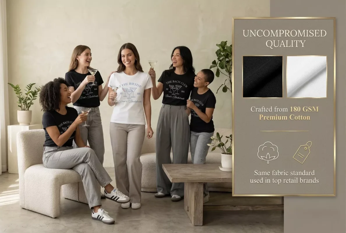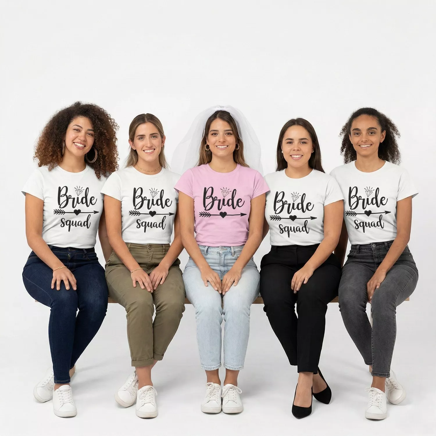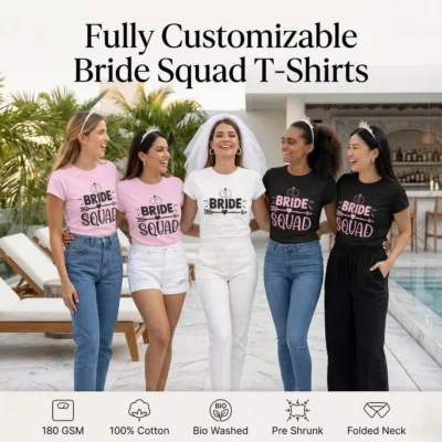 Make your bachelorette party unforgettable with matching personalized bride squad T-shirts — designed to bring your girls together in the most fun and stylish way.