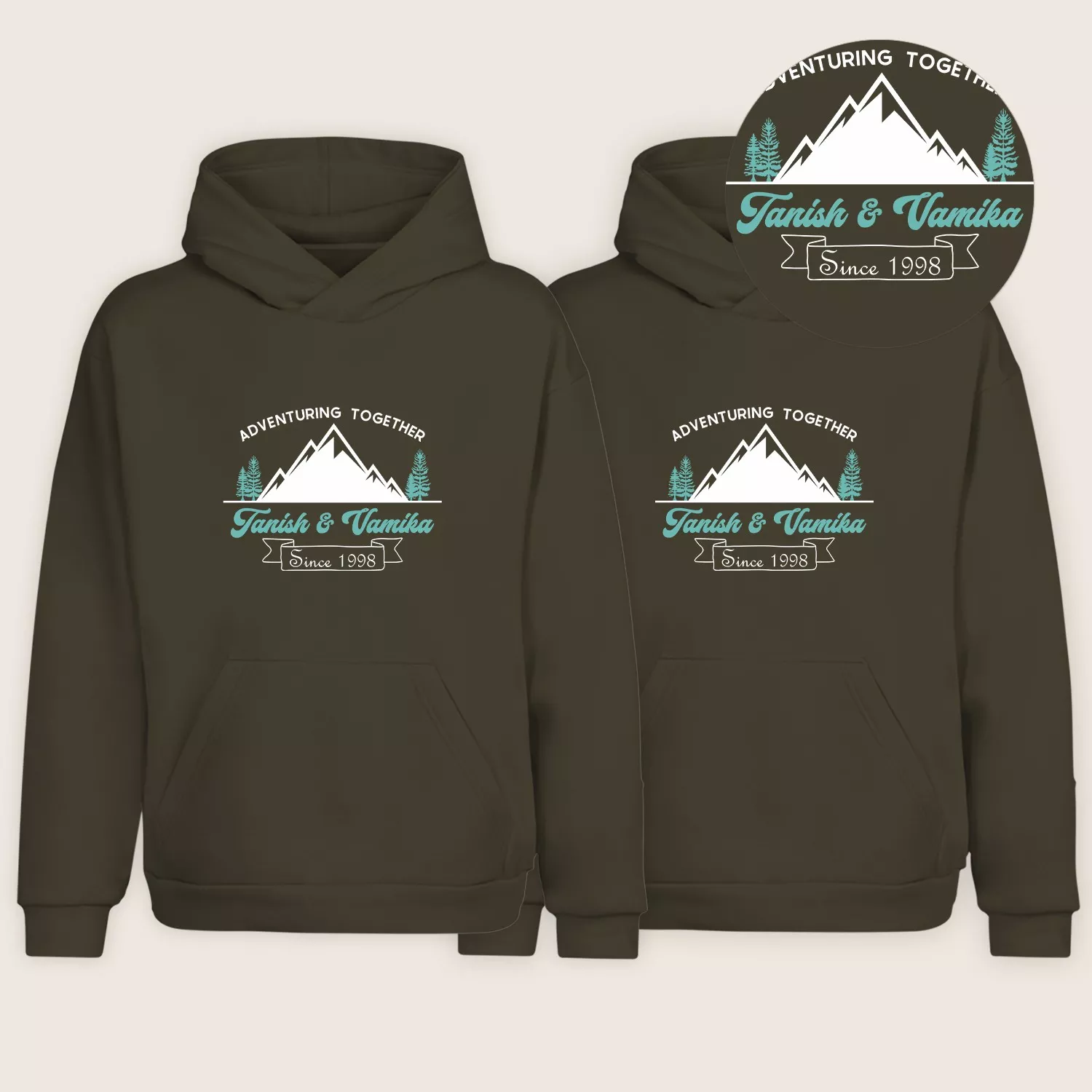 Celebrate your bond in style with our Custom Script Name Couple Hoodies, crafted exclusively for couples who love to express their connection with comfort and creativity. These matching hoodies feature a stunning mountain adventure print with personalized names and a โSinceโ yearโperfectly symbolizing your shared journey together.