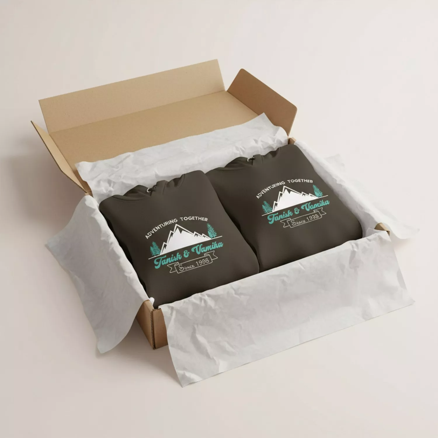 Gift-ready packaging makes it an ideal surprise for anniversaries, birthdays, Valentineโs Day, or as a cozy keepsake for your adventures together. Pair it with our personalized mugs or t-shirts for a complete couple gift set that celebrates love and togetherness.