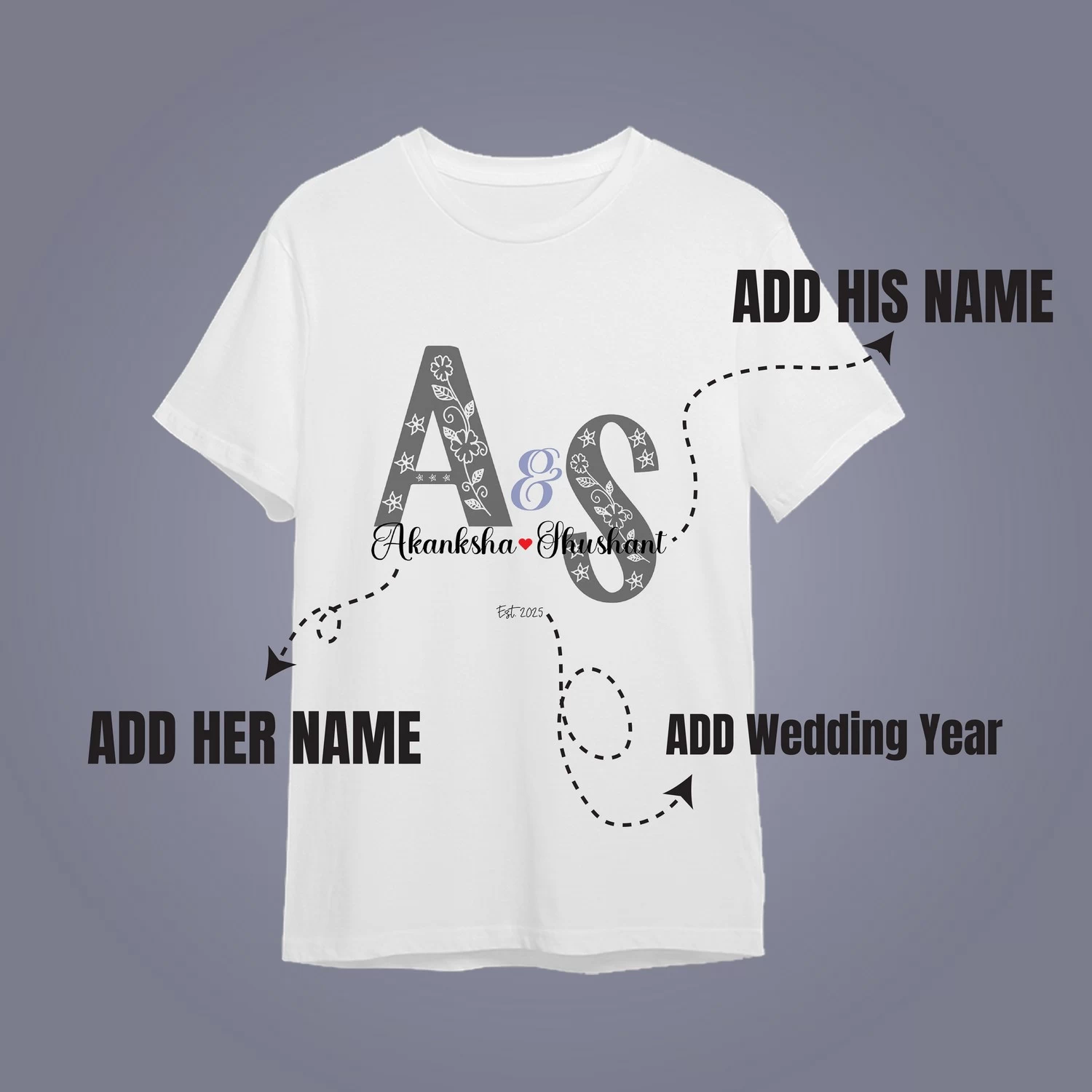 Celebrate your relationship with personalized matching couple T-shirts designed with elegant initials and custom names. These romantic couple tees are ideal for couples who want to showcase their bond in a stylish and meaningful way.