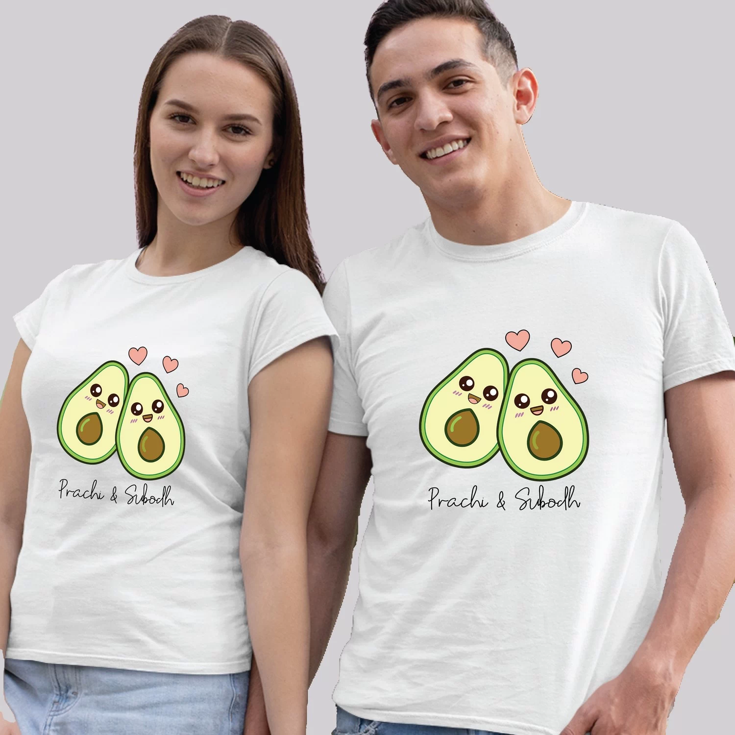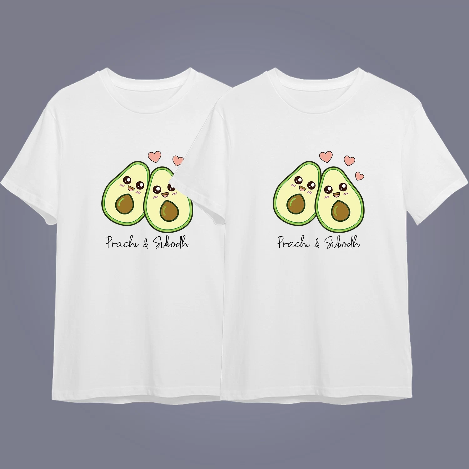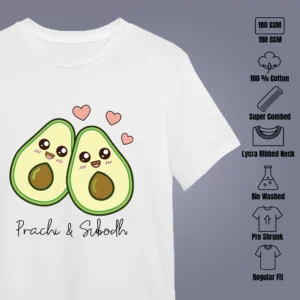 Celebrate your relationship with these adorable personalized avocado couple T-shirts designed for couples who love fun, cute, and meaningful matching outfits. Featuring a charming avocado pair illustration and customizable names printed below, these matching tees are perfect for couples who want to show their bond in a playful way.