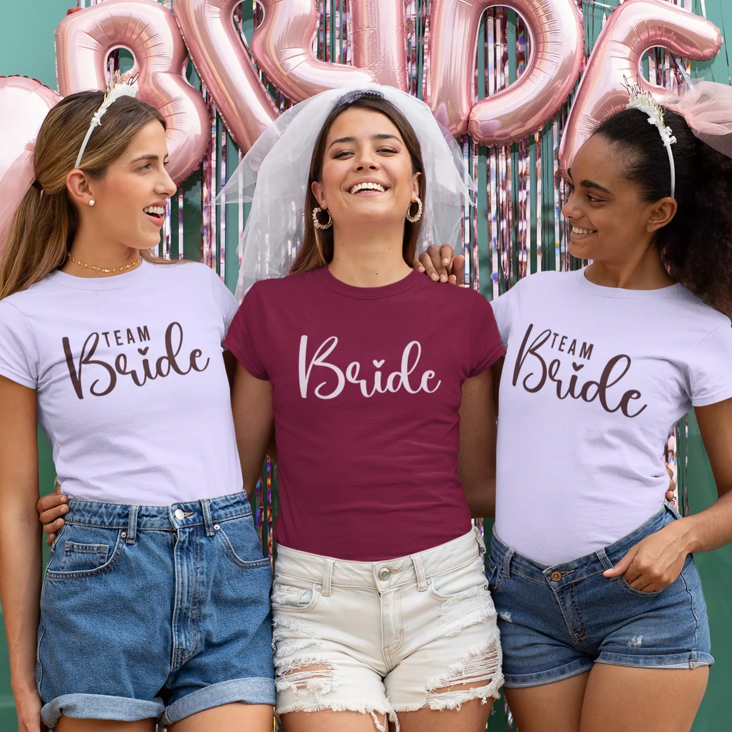 Make your bachelorette party unforgettable with matching personalized bride squad T-shirts β€” designed to bring your girls together in the most fun and stylish way.