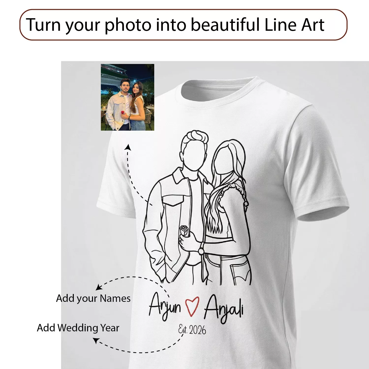 This isn’t just matching tees—it’s your relationship, captured in a minimal line art design that feels intimate and real.