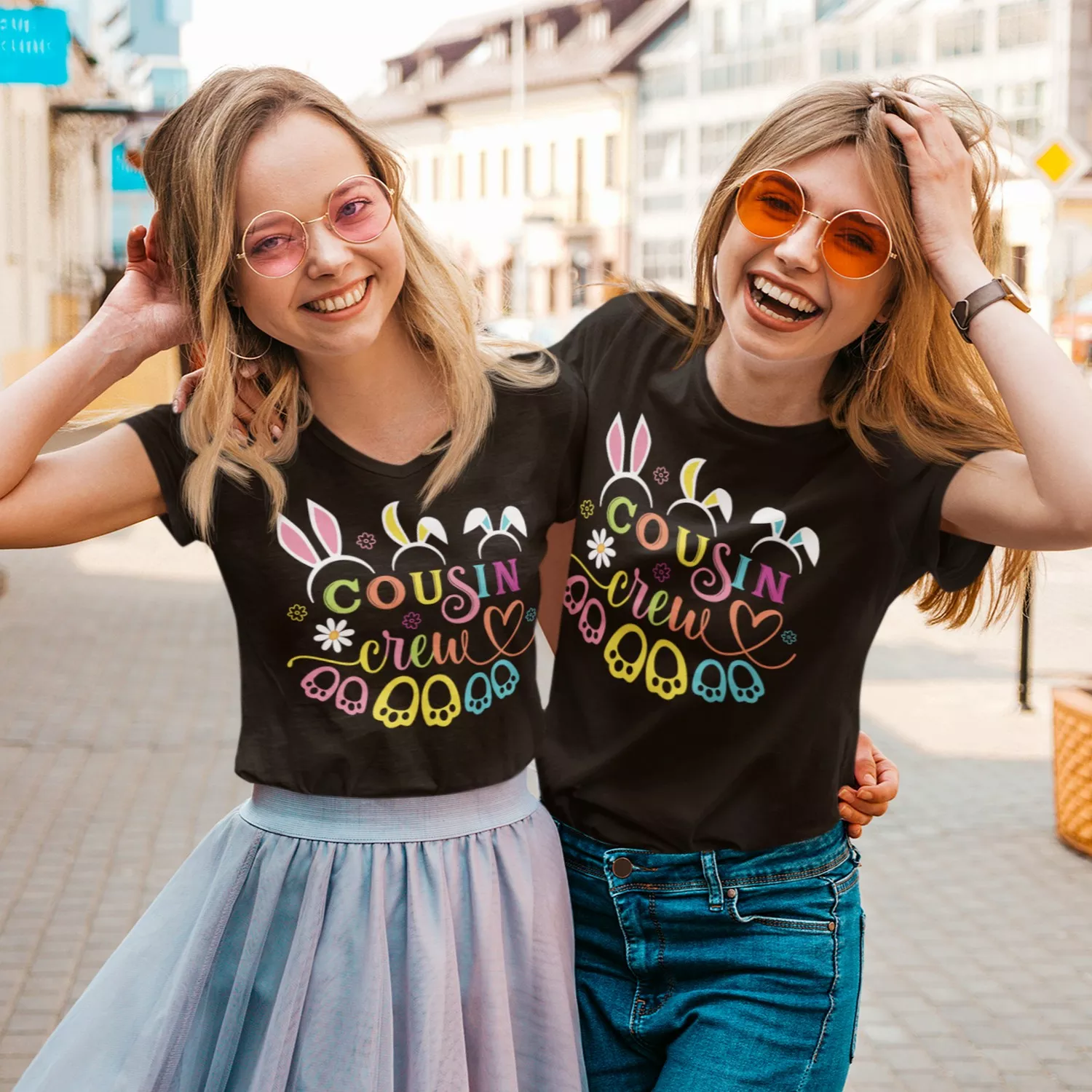 The vibrant typography paired with playful bunny ears and colorful accents creates a lively, youthful vibe. It’s eye-catching, photo-ready, and instantly communicates fun group energy. Personalization options let you make each piece unique for your cousin squad.