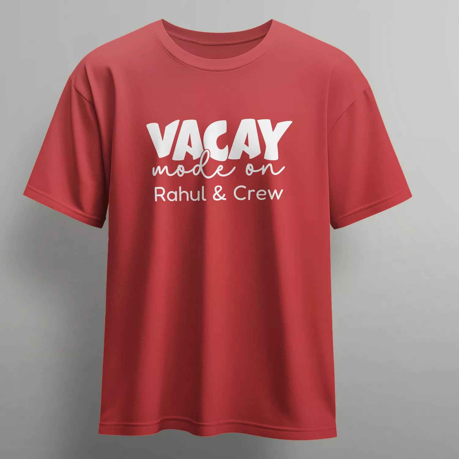 Personalized family vacation T-shirts designed for matching travel outfits. Featuring a bold “Vacay Mode On” typography design with custom name printing, these tees are perfect for families heading on trips, holidays, or weekend getaways. Made from soft, breathable fabric, they ensure comfort during long travel days while helping your family stand out in photos. Available in sizes for men, women, and kids, these matching T-shirts are ideal for airport looks, beach vacations, theme park visits, and pre-trip photoshoots. A great gifting option for families planning a vacation together.