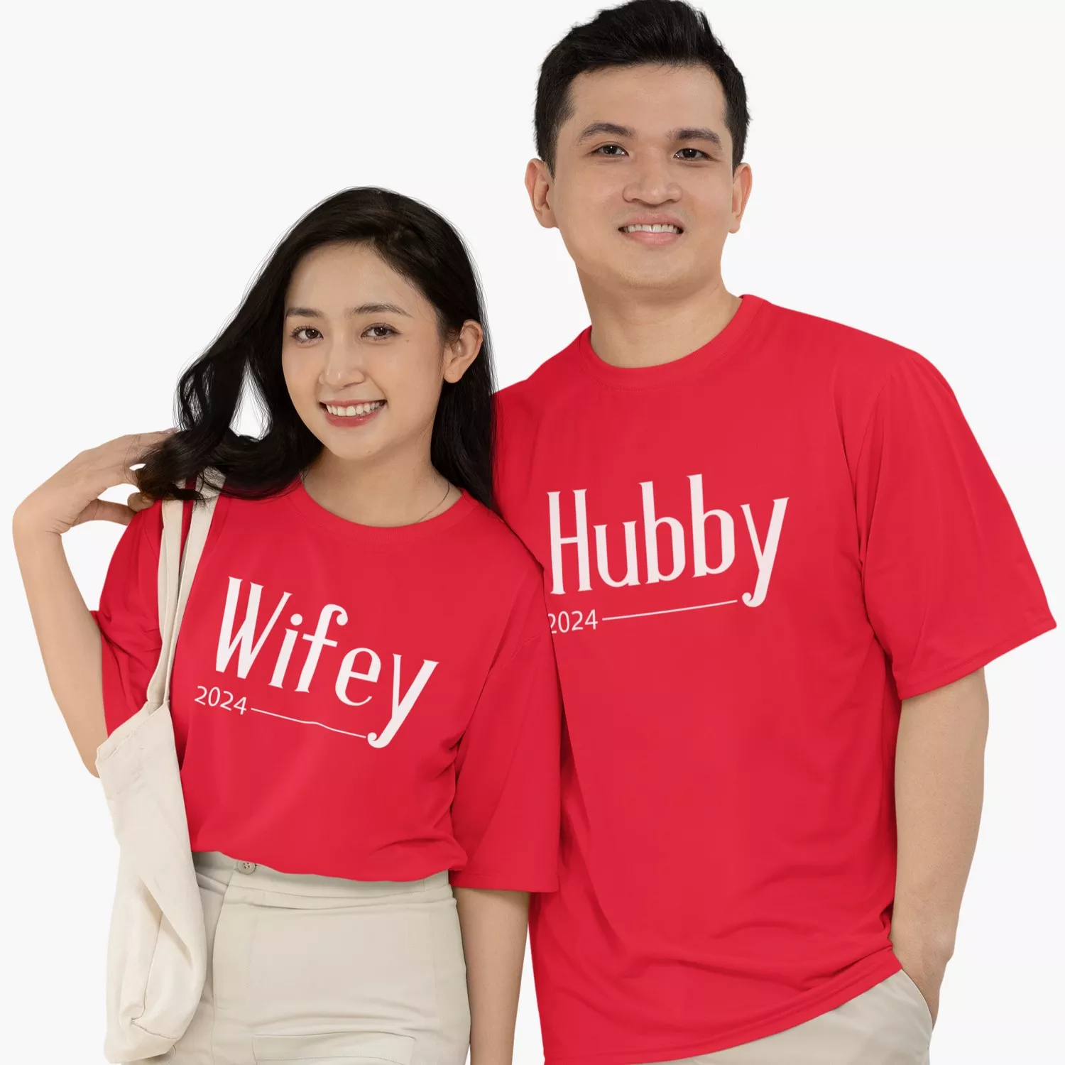 The design features “Hubby 2024” and “Wifey 2024” text prints that symbolize the year you began your married journey together. The oversized fit gives a relaxed, trendy look that couples love for vacations, casual outings, and Instagram-worthy photos.