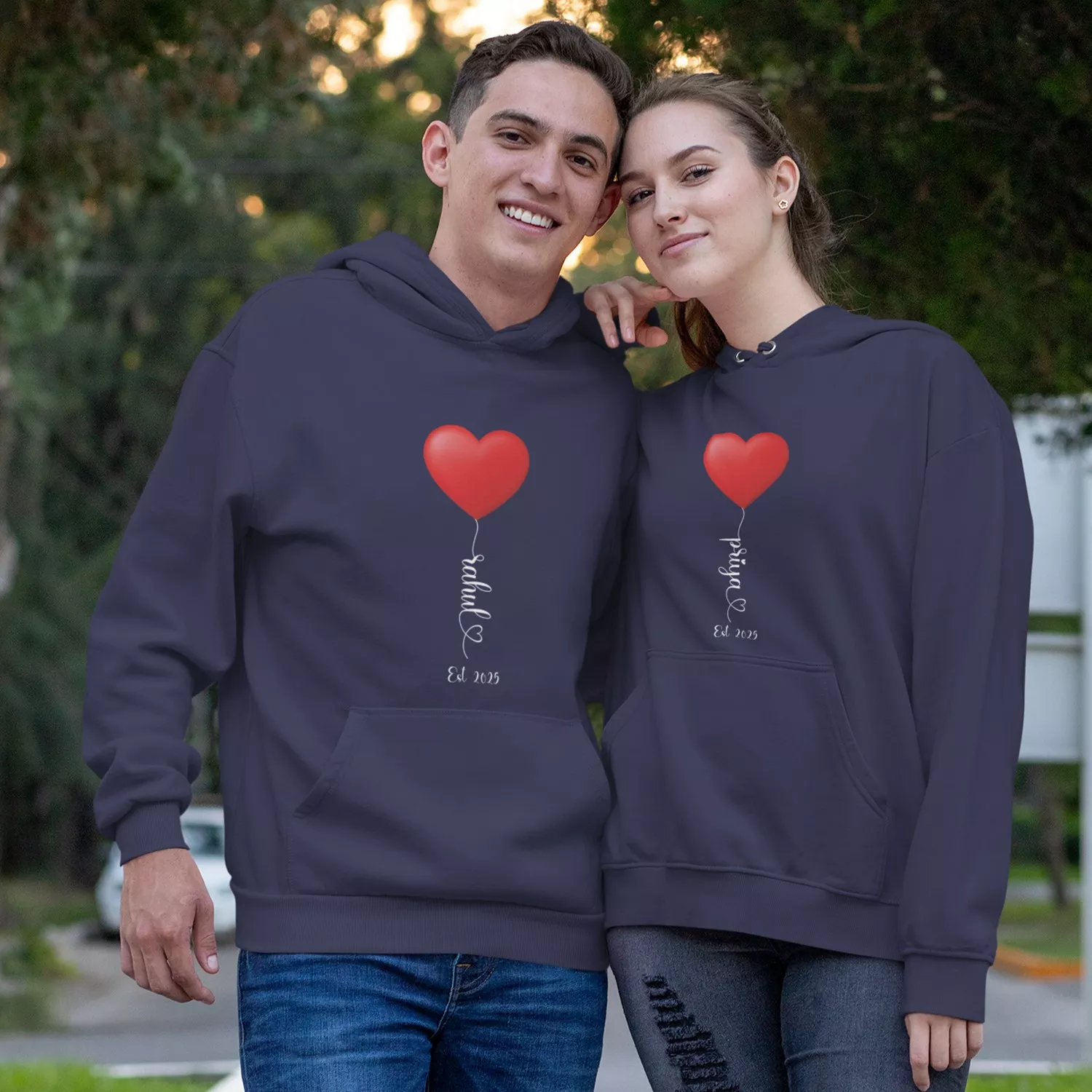 Each hoodie features a minimal red heart balloon design, paired with custom name printing and the text β€œEst. 2025,” symbolizing the start of your beautiful journey together. Whether it’s for an anniversary, Valentine’s Day, a pre-wedding photoshoot, or a thoughtful surprise gift, these hoodies make a meaningful keepsake for any couple.