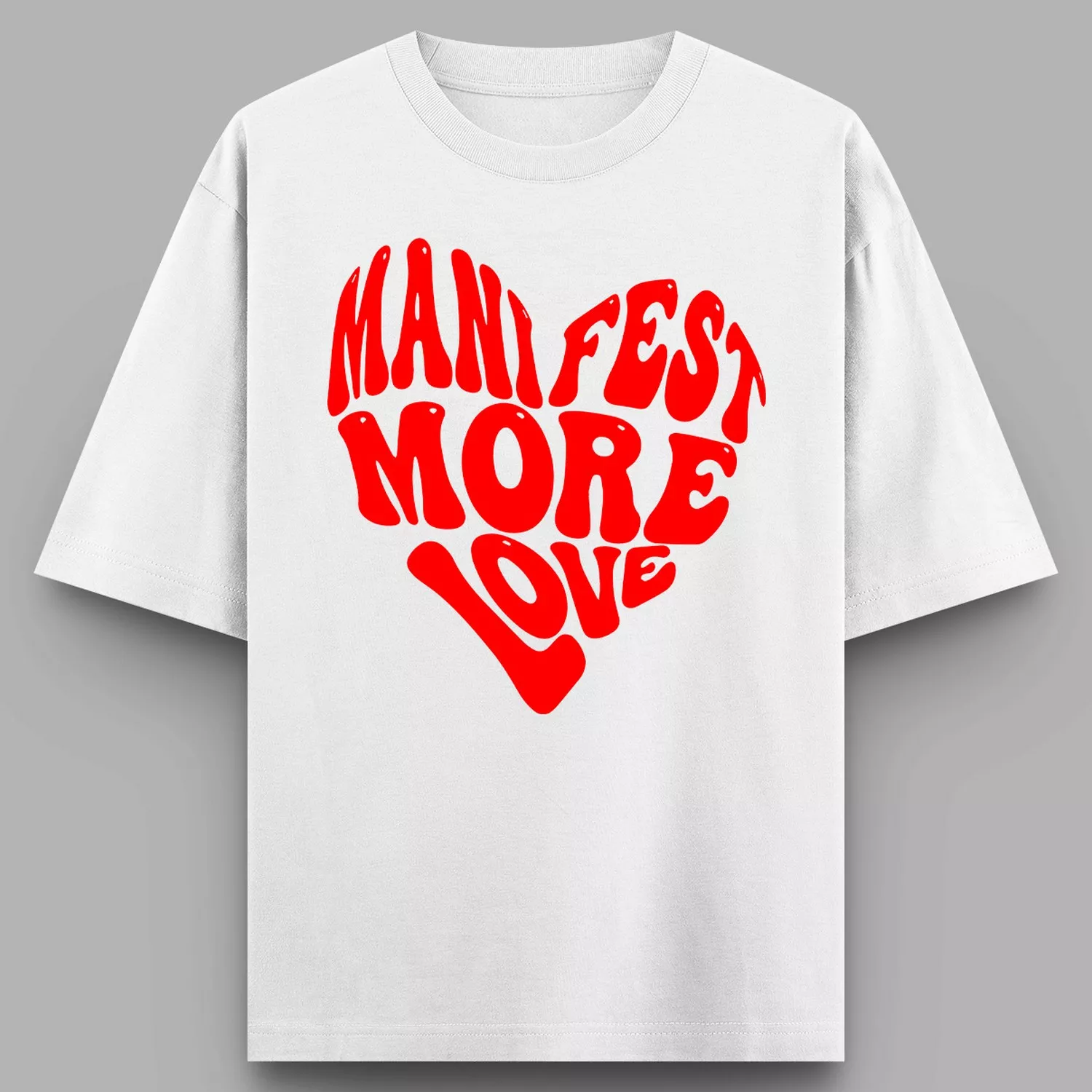 Celebrate your relationship with these personalized oversized couple T-shirts featuring the “Manifest More Love” design. This matching couple outfit is perfect for partners who love minimal yet expressive fashion. The bold heart-shaped typography adds a stylish and romantic touch, making it ideal for photos, casual outings, and couple moments.
