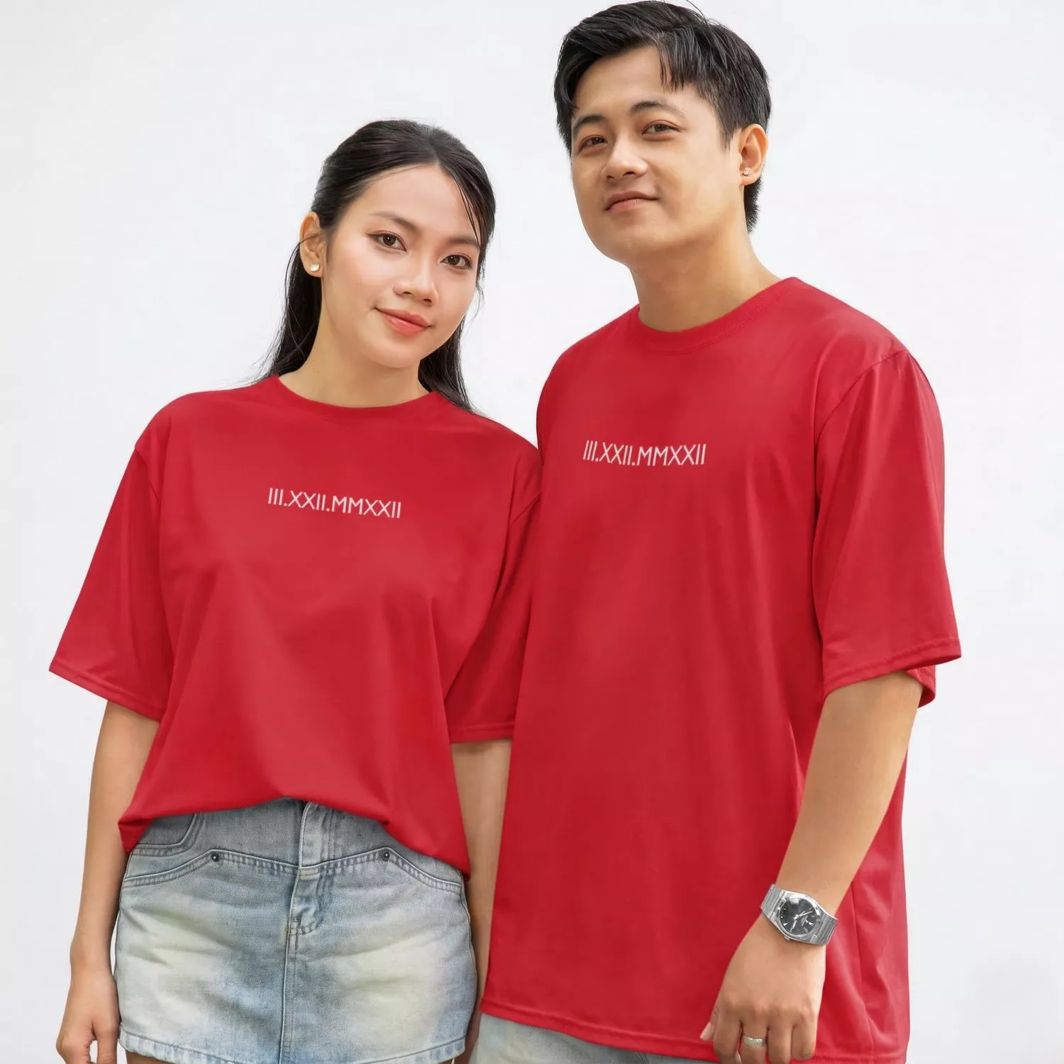 Celebrate your relationship with these Personalized Oversized Couple T-Shirts featuring a custom Roman numeral date print. Designed for couples who love minimal and meaningful fashion, these matching oversized tees highlight your special date in a subtle and stylish way.
