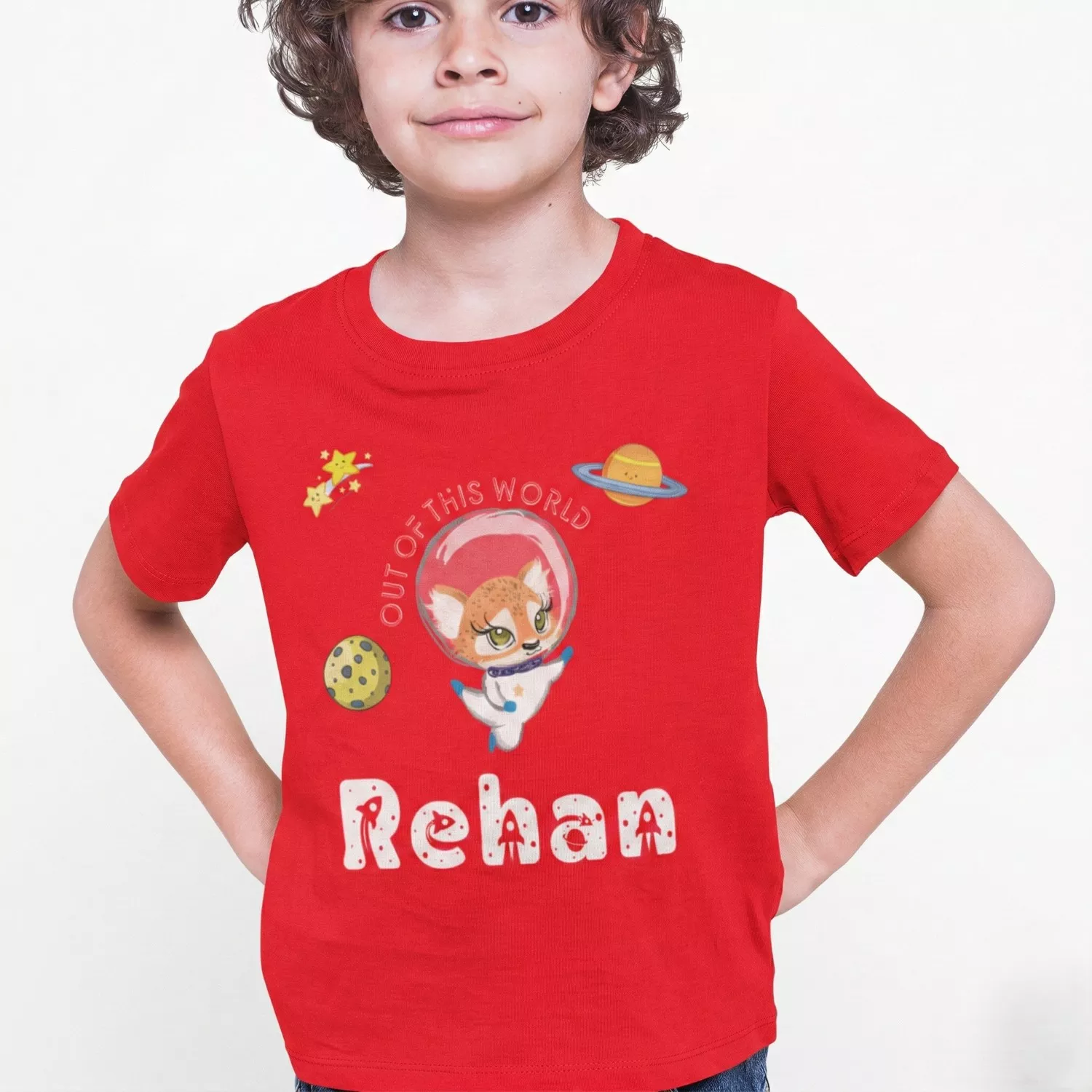 This personalized space-themed name T shirt is crafted for everyday comfort and unique style. Designed with a vibrant astronaut illustration and custom name print, it makes a thoughtful gift for birthdays and special occasions.